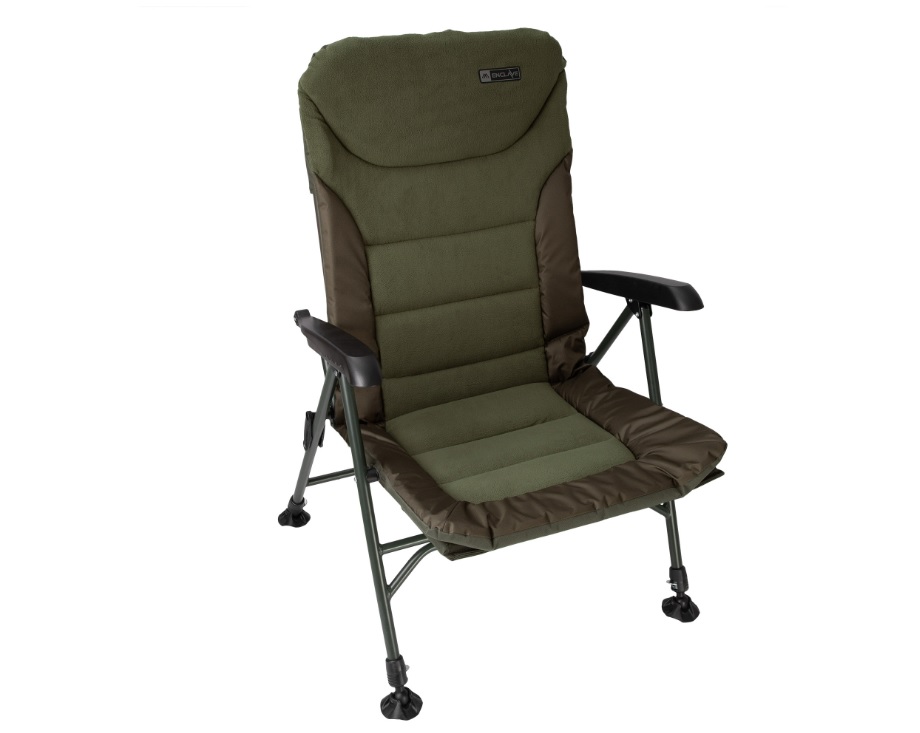 Mimoriadne pohodlné kreslo vybavené nastaviteľnými nohami s veľkými pätkami, podrúčkami, sklopným operadlom a matracom s povrchovou úpravou Polar fleece. Správne rozmery operadla poskytujú pohodlie počas niekoľkodňových výprav na ryby, dokonca aj vysokým ľuďom.